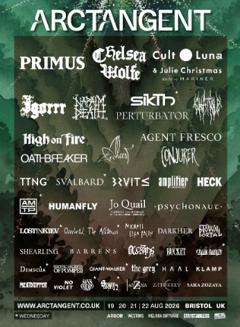 ArcTanGent Festival 2026 presents an array of exclusives, reunions and final ever performances over a killer line-up including Primus, Chelsea Wolfe, Cult of Luna with Julie Christmas, and Napalm Death.